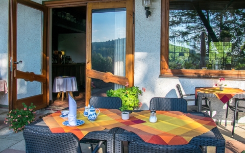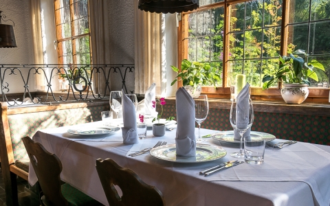 Unser Restaurant und Terrasse steht – von einigen Veranstaltungen abgesehen – ausschließlich unseren Hotelgästen zum Frühstück und Abendessen zur Verfügung.